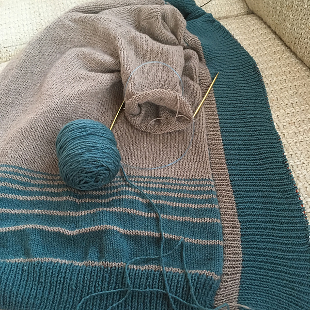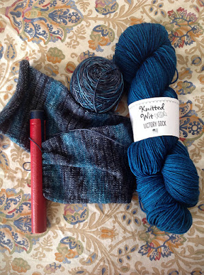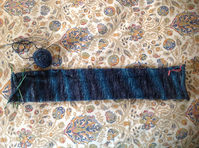 My other active project over the past two weeks is the Slacktide Scarf. It has a nice interesting stitch--the perfect antidote to a long, boring stockinette tube.