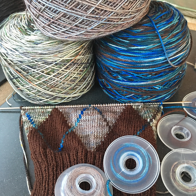 The other pair is variegated argyle socks using the chart I created on Stitch Fiddle.