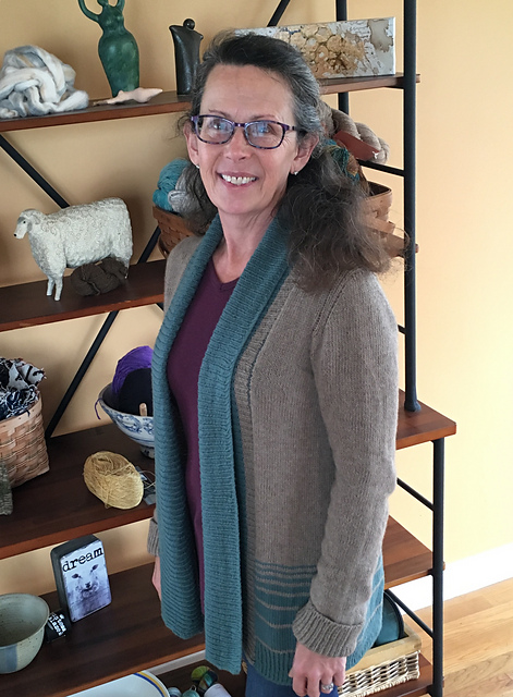 Kelly finished the Running Water cardigan and has worn it three times. The fit is great and it is so soft and warm.