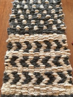 The bulky-weight, 6-shaft weaving is finished, too. It turned out a little too narrow to be a loom bench cushion so it is now out in the cat’s house as a warm and comfy sleeping pad. It was a great way to sample bulky weaving and the 6-shaft draft and to get used to the Macomber loom.