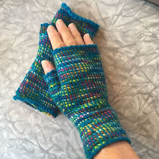 I started the Paving Mitts by Ellen Silva (twinsetellen). This is a fun, fast, Tunisian crochet pattern for mitts with a thumb gusset. This is a great pattern for using scraps, although I’m using two yarns from my stash.