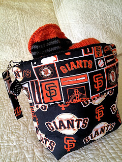 She joined Kelly in making a Crackerjack Cowl by Stacy Simpson Duke for her team, the Seattle Mariners. This has been a fun project and is making Marsha into a baseball fan despite the fact that previously she has been a mediocre fan at best. :-) Marsha may need to get a Mariner's project bag from Front Range Bags Etsy shop where Kelly got her fabulous, new SF Giants project bag!