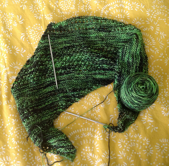 Since she returned home from California, she caught up on her Mariner Crackerjack Cowl, and has continued working on the bright green Antarktis.