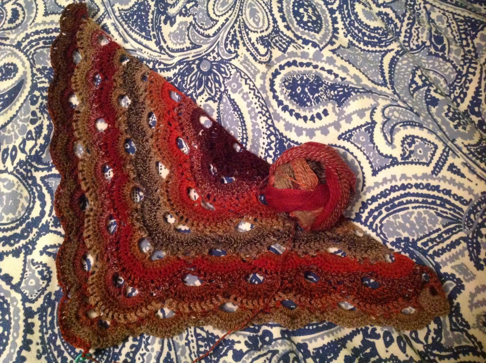 Marsha reports on her beginning crochet class and her project, Virus Shawl.