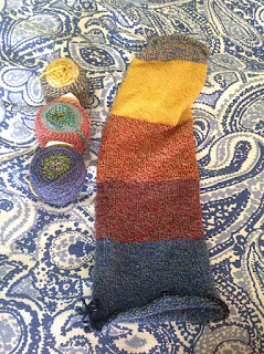 Marsha also finished her son's Tricolor Socks made from her handspun from last winter. He turned 18 earlier this month so she finished the socks for his birthday.