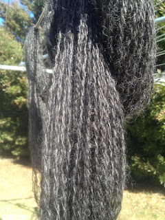 Kelly has no finished projects and very little knit or crochet progress. The one project that got some time was the crochet hippo that she is making for our Crochet-Along. She has been doing lots of fiber work, though. She is spinning Wensleydale for her Aunt's vest.