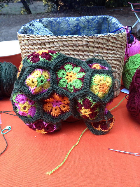 During a Veteran's Day camping trip in The Clubhouse, Kelly also made progress on the Hippo (pattern by Heidi Bears).