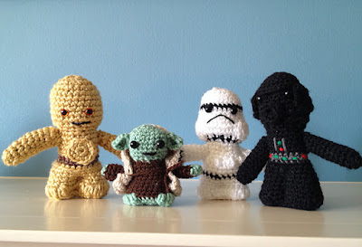 Meanwhile Kelly continues crocheting on the Starwars amigurumi. She has four done, Jabba on the hook and is planning at least ten more for the May the Fourth Be With You deadline! The designer's (Lucy Collin) Flickr page has even more ideas than the book that came with the kit!