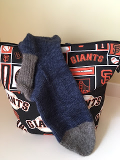 Kelly has won the battle with the first of the Civil War socks. Several adjustments for fit were needed, but the finished sock is now perfect and it is on to the second one.| Sock 1 is done! |