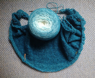 She is also continuing work on the Havasu Falls Shawl that she is making from a Freia gradient yarn.