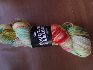 The Two Ewes have two giveaways this episode! Thanks to Claire from The Woolly Thistle, (and the New Hampshire Knits podcast) we have three skeins of Blacker Yarns to give away: Blacker Classic, Westcountry Tweed, and Blacker Swan. All are DK weight, 50 g balls of yarn. Go to the Ravelry group and answer the question in the Woolly Thistle Giveaway thread to be entered to win. Thank you, Claire for supporting the podcast with these three skeins to give away to listeners! Here are the skeins that will be given to one lucky winner!The second giveaway is one of three GORGEOUS hand-dyed skeins Kelly bought from Countess Ablaze in England. Kelly told The Countess that she was going to use one of the skeins for a podcast prize, so she included a free tote bag in the order. So the lucky winner will win a skein of The Blue-Faced Baron fingering weight yarn in the color "This Ain't a Scene" and a black Countess Ablaze tote.