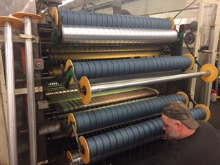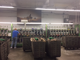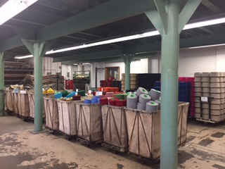 | Lots of seven pound cones of yarn reading for weaving. |