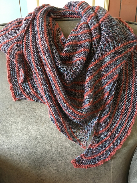 Kelly has finally finished the Playground Shawl! This pattern caused her a lot of trouble, not because it is difficult, but because of her combination of slippery yarn and slippery needles.