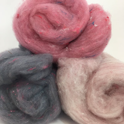 The rambouillet wool is also available in carded batts. The batts are a blend of the wool, mohair, and silk noil.