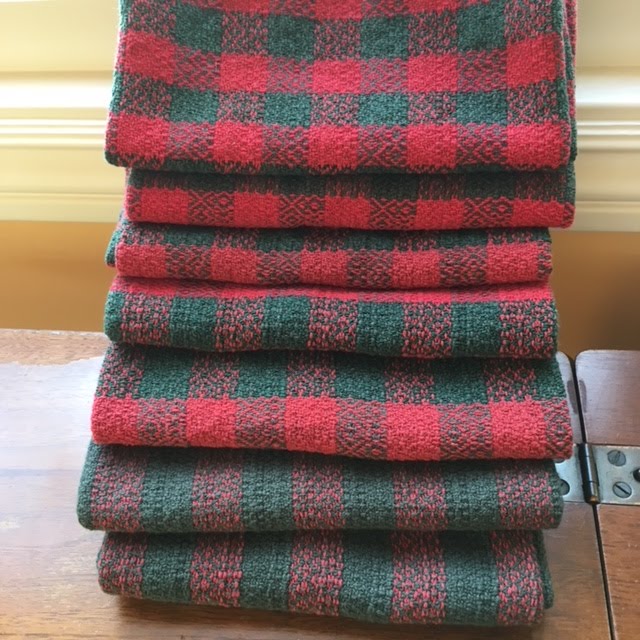 Kelly has been a little slow on her projects, although she did finish the Christmas dishtowels that she recently put on the LeClerc floor loom. The towels are all variations of Swiss Twill from the Marguerite P. Davison weaving book.