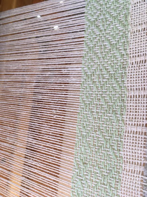Now she's working on Summer Fjord using a Fibra Natura Linen. Her yarn is in a heavier weight than called for in the pattern so there has been some adjusting of the pattern.