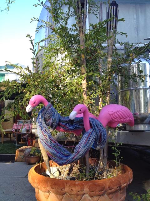 Eileen's Treasures in Pismo Beach had Flat Feet Fibers sock blanks and Marsha bought one. Kelly bought a couple of skeins of Frog Tree Alpaca Sport and a skein of hand-dyed sock yarn.